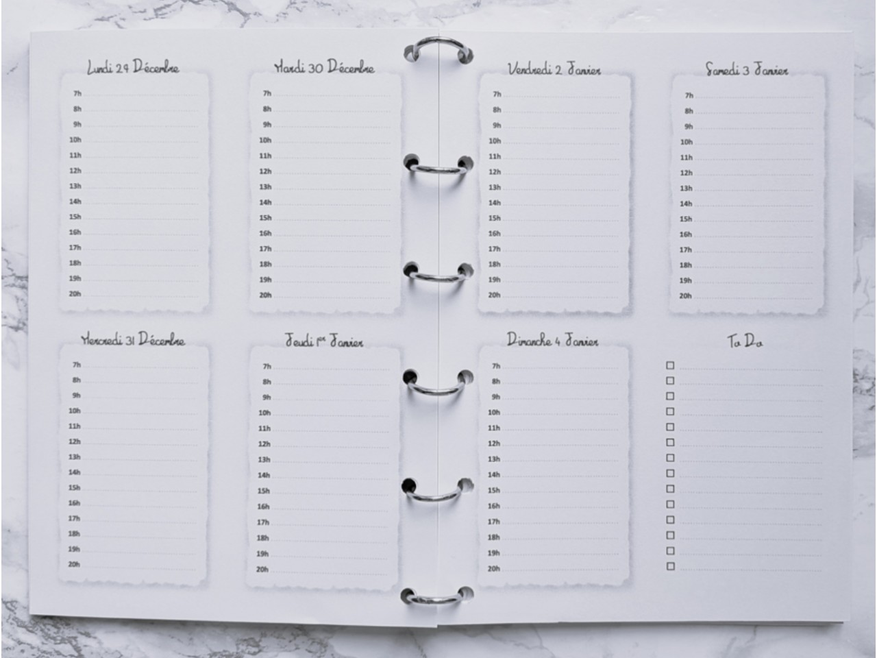 Complétez ou renouvelez votre agenda sur-mesure à l'aide des feuilles de recharges !