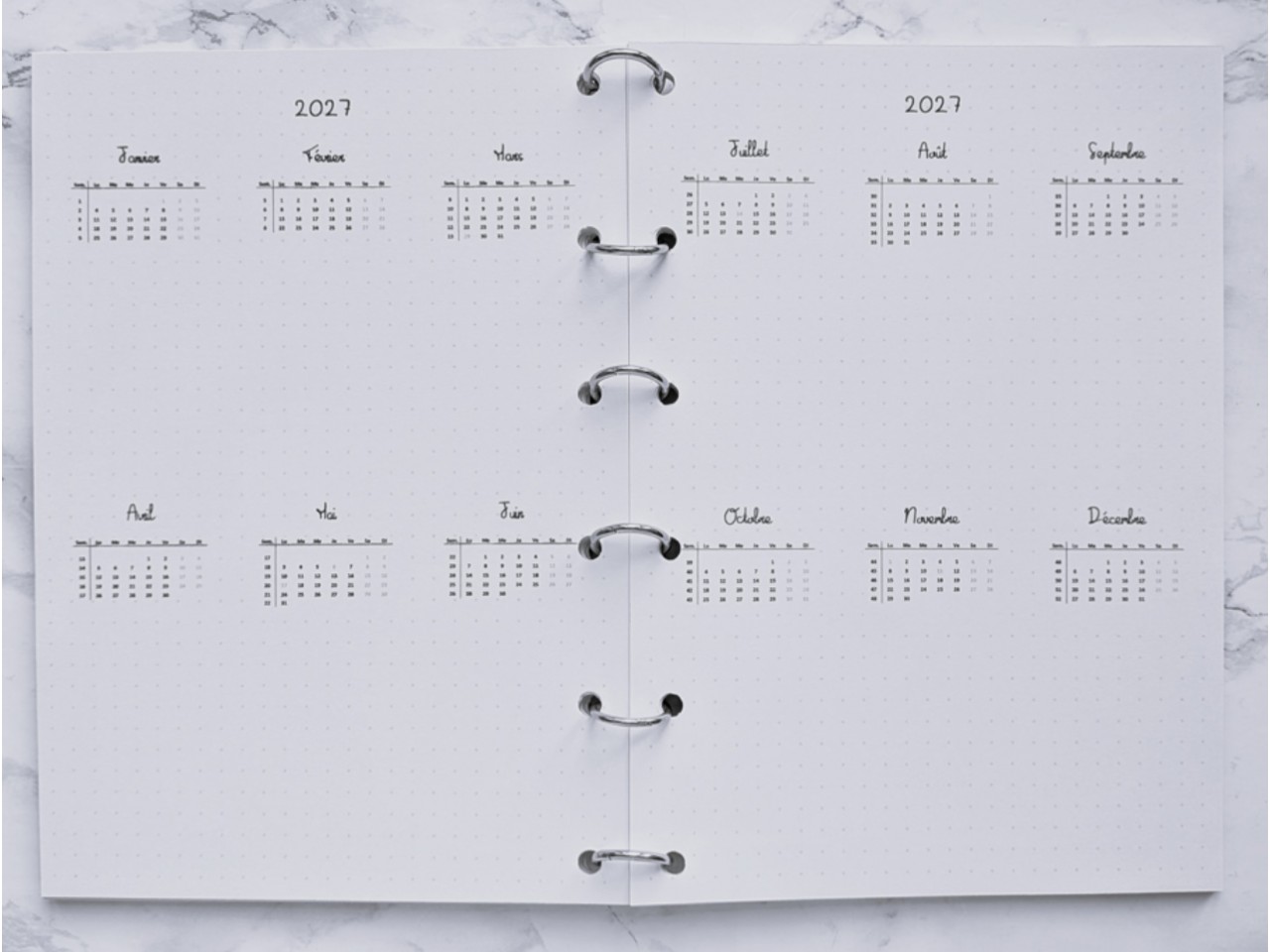 📜 Compatible avec les Bullet journaux A5 fermés par des anneaux de reliure : 6 perforations (32 mm entre 2 perforations).