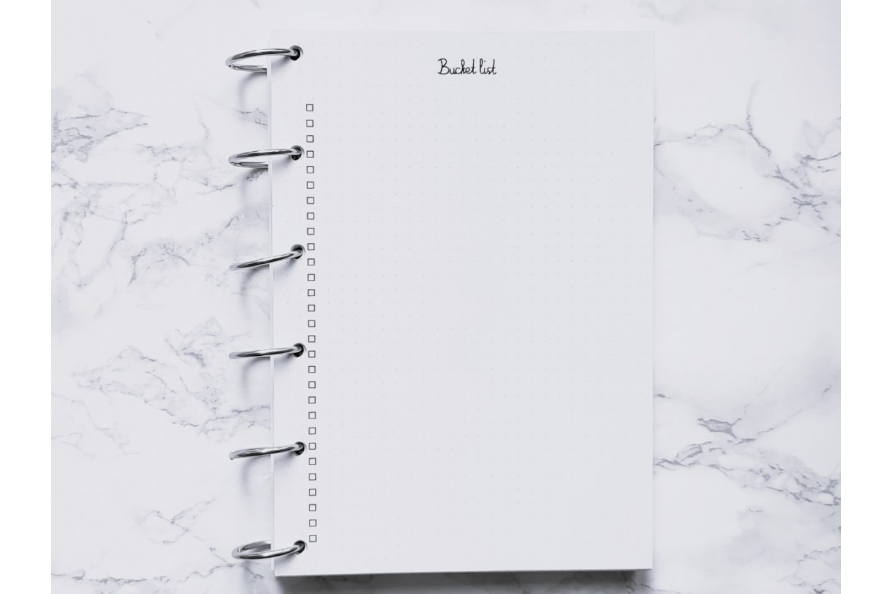 2 pages avec coches titrées "Bucket list" pour lister vos envies et les réaliser petit à petit.
